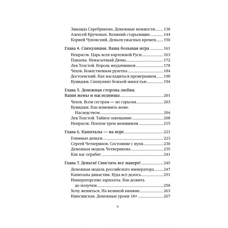 Ведь талант и слава вовсе не гарантируют человеку богатства и процветания и не являются абсолютной защитой от нищеты. Почему семья Пушкина постоянно была в долгах, а Бунин растратил под ноль даже Нобелевскую премию? Почему Чехов сумел купить виллу в Крыму, а Некрасов оставил наследство сразу трем любимым женщинам? Как прошлась по капиталам знаменитостей Октябрьская революция? Как формировался личный бюджет династии Романовых и советских вождей?