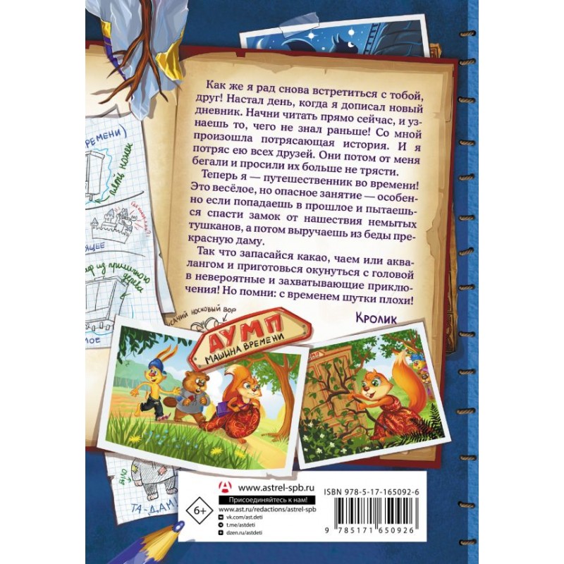 Долгожданное переиздание дневника жизнерадостного Кролика и его друга бобра Бобровича с рисунками и стихами Кролика. Что случится, если познакомиться с путешественником во времени? Увлекательный полёт в прошлое может окончиться в темнице рыцарского замка, под окнами которого уже бесчинствует толпа диких тушканов. Как спасти Суслицу и победить полчище грызунов? Кролик с Бобровичем во что бы то ни стало должны спасти свадьбу благородного рыцаря Суусика. Творческие задания, раскраски и загадки на сообразительность.