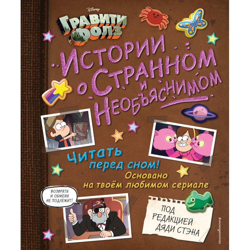 Фанаты "Гравити Фолз", трепещите! Перед вами новый крутой сборник о приключениях Диппера и Мэйбл! Вспомните все самые невероятные и странные случаи, произошедшие с двойняшками на каникулах в Хижине Чудес! Загадочные происшествия, много картинок, но главное – новый, неожиданный, взгляд на любимые истории! Ведь дядя Стэн готов поделиться собственной версией знакомых событий. Не упусти уникальный шанс узнать, как всё было на самом деле. ОБМЕНУ И ВОЗВРАТУ НЕ ПОДЛЕЖИТ!* *Дядя Стэн