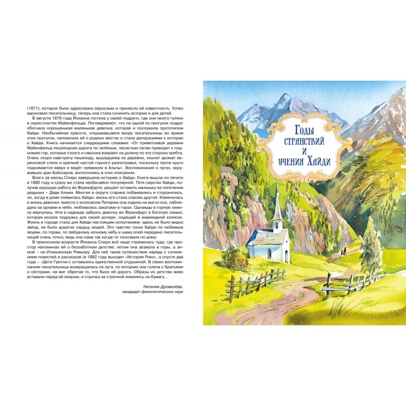 Йоханна Спири – швейцарская писательница, автор замечательных произведений для детей, самое известное из которых – повесть «Хайди». Увидевшая свет в 1880 году, книга мгновенно стала популярной и впоследствии была переведена более чем на 50 языков. Главная героиня повести – маленькая девочка Хайди – своей добротой, искренностью и добродушием завоевала любовь юных читателей. Дети с большим интересом следят за приключениями Хайди, любуются вместе с ней живописными склонами Швейцарских Альп, радуются, мечтают, в общем, с удовольствием проводят время.