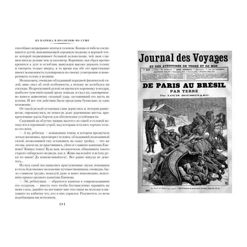 У молодого парижанина по имени Жак Арно умирает богатый дядюшка, и Жаку предстоит отправиться за своим наследством — в Бразилию. К сожалению, Жак безнадежно страдает от морской болезни и не в силах выдержать даже малейшую качку… Решение этой проблемы находит школьный товарищ Жака, Жюльен де Клене. Он предлагает отправиться из Парижа в Бразилию… по суше! Роман «Из Парижа в Бразилию по суше» — одно из наиболее масштабных, веселых, увлекательных и информационно насыщенных произведений Луи Буссенара. Он повествует о кругосветном путешествии, герои которого пересекают три континента, переживая невероятные приключения. Примечательно, что действие первой части книги разворачивается на необъятных просторах Сибири…
