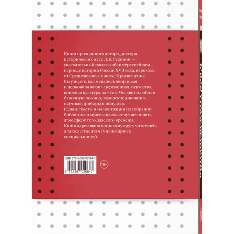 Исторический процесс одного из самых активных и бурных периодов развития России показан через интересные сюжеты, тексты очевидцев и визуальные образы: вы узнаете, как менялись дворцовая и церковная жизнь, церемониал, искусство, книжная культура, за что в Москве полюбили барочную поэзию, заморские диковины, научные приборы и попугаев