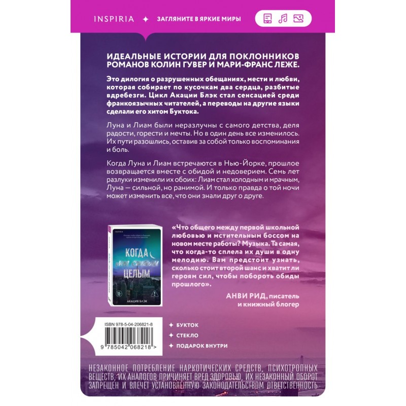 Это дилогия о разрушенных обещаниях, мести и любви, которая собирает по кусочкам два сердца, разбитых вдребезги. Цикл Акации Блэк стал сенсацией среди франкоязычных читателей, а переводы на другие языки сделали его хитом Буктока. Идеальный выбор для поклонников романов Колин Гувер и Мари-Франс Леже. Сияющая фольга на обложке и эсклюзивный подарок только в первом тираже.