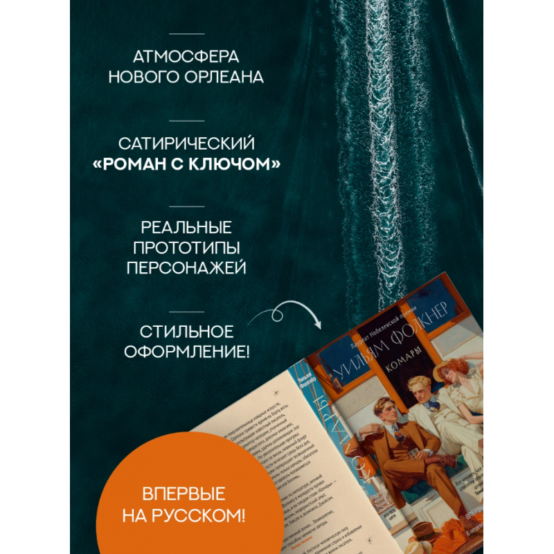 Будущий лауреат Нобелевской премии по литературе, великий американский писатель Уильям Фолкнер в молодости провел в Новом Орлеане многие бурные месяцы, и их плодом стали «Комары» — модернистский опыт, вдохновленный Т. С. Элиотом, Хаксли и, возможно, Джойсом, сатирический «роман с ключом», который успешно обидел очень многих.
