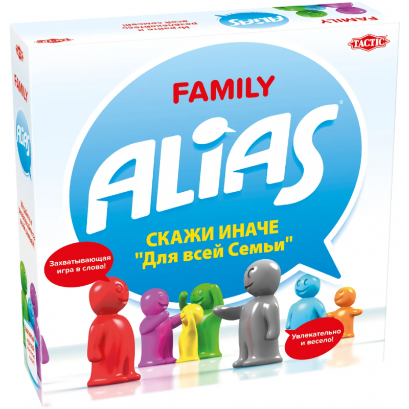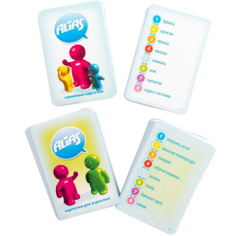 В отличие от традиционного Alias в данной версии игроки не делятся на команды, а каждый передвигает свою фишку на поле. Карточки со словами разделены на взрослые и детские. Рулетка покажет, кто из игроков будет вашим партнером для угадывания в этом раунде, а также надо ли взрослому при объяснении слова использовать дополнительную карточку с заданием, усложняющим объяснение. За каждое правильно угаданное слово оба партнера получают возможность двигаться вперед по игровому полю. Первый, кто достигнет финиша, выиграл.