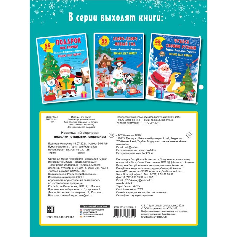 С замечательной книжкой ребёнок сможет смастерить гирлянды и ёлочные украшения, придумать необычные новогодние открытки и написать письмо Деду Морозу.