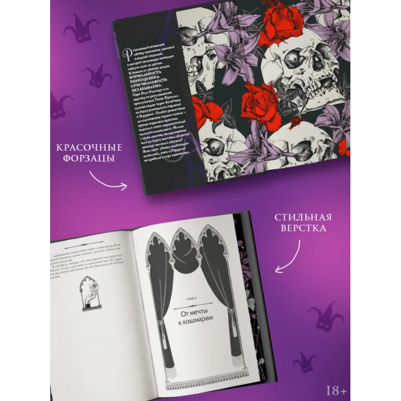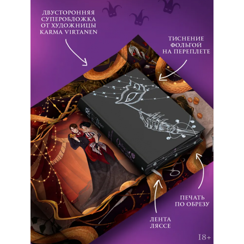 - Печать по обрезу, красивые форзац и нахзац, 8 внутренних иллюстраций, лиловая и голубая фольга на переплете, ляссе, новый потрясающий внутренний макет. Суперобложка от художницы Valentaine и двусторонний суперпостер от художницы KarmaVirtanen!