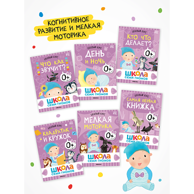 Годовой базовый курс. Комплект 0+ (Школа Семи Гномов. Базовый курс), 12 книг + развивающие материалы Школа Семи Гномов – это система, а не набор книг. Комплекс из 12 книг направлен на всестороннее развитие ребенка. 6 книг для развития когнитивных способностей: познавательный интерес, умение думать, анализировать, делать выводы. И еще 6 книг для на знакомства с окружающим миром, его закономерностями и взаимосвязями.