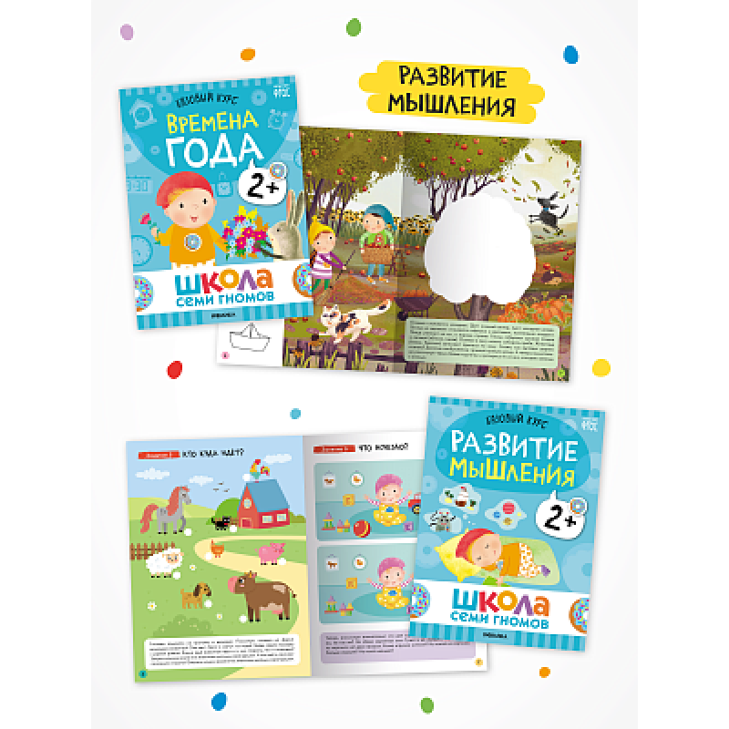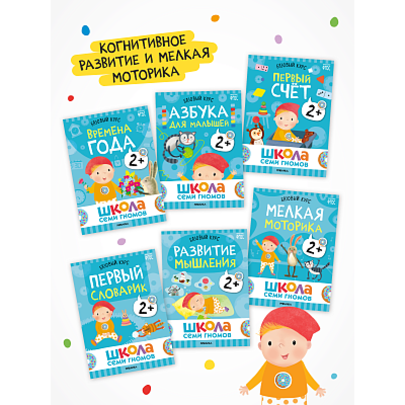 Годовой базовый курс. Комплект 2+ (Школа Семи Гномов. Базовый курс), 12 книг + развивающие материалы Школа Семи Гномов – это система, а не набор книг. Комплекс из 12 книг направлен на всестороннее развитие ребенка. 6 книг для развития когнитивных способностей: познавательный интерес, умение думать, анализировать, делать выводы. И еще 6 книг для на знакомства с окружающим миром, его закономерностями и взаимосвязями.