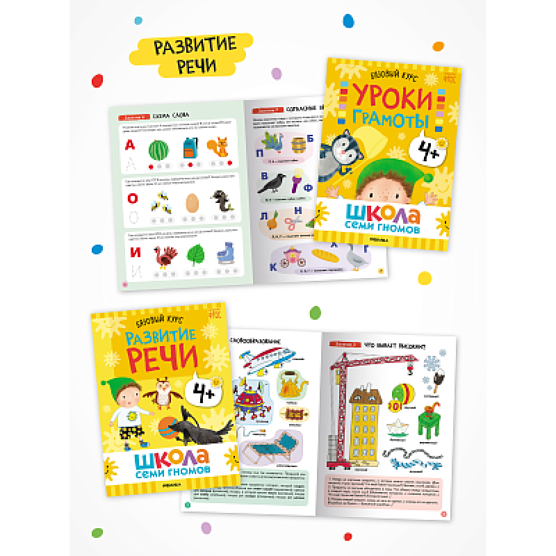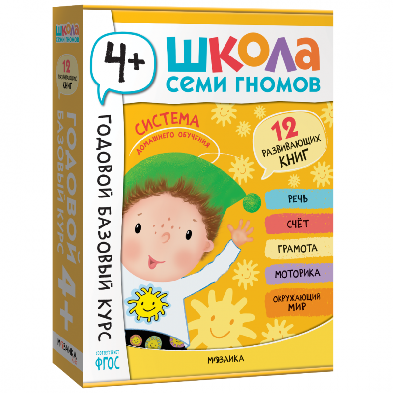 Годовой базовый курс. Комплект 4+ (Школа Семи Гномов. Базовый курс), 12 книг + развивающие материалы Школа Семи Гномов – это система, а не набор книг. Комплекс из 12 книг направлен на всестороннее развитие ребенка. 6 книг для развития когнитивных способностей: познавательный интерес, умение думать, анализировать, делать выводы. И еще 6 книг для на знакомства с окружающим миром, его закономерностями и взаимосвязями.