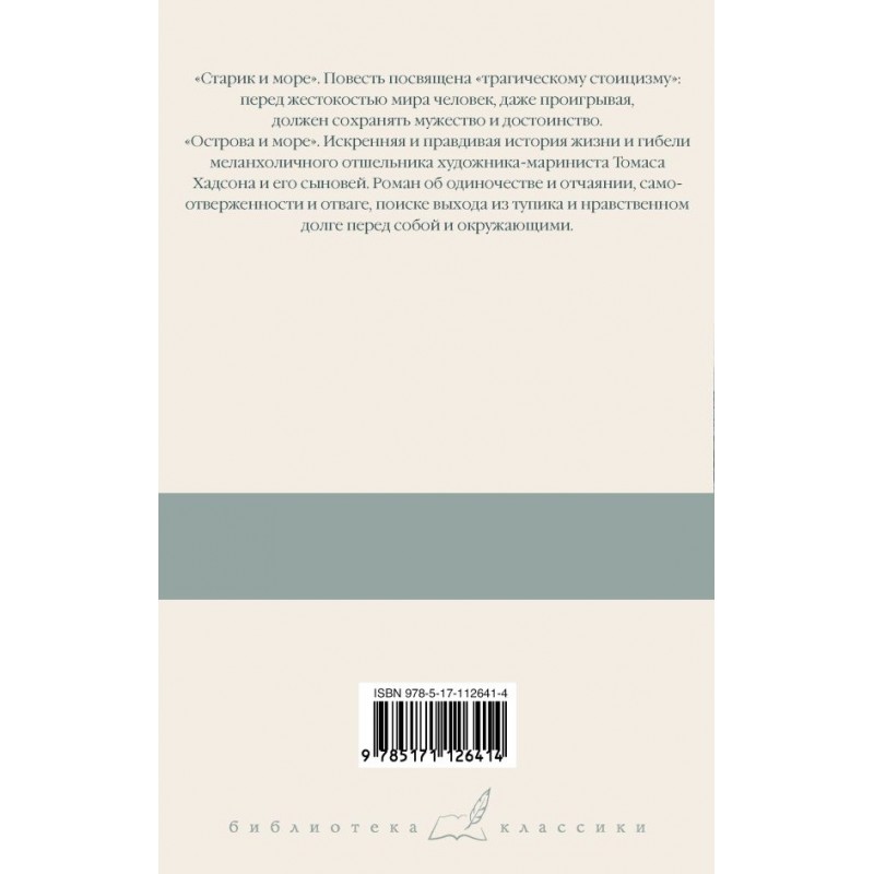 Повесть «Старик и море» — одно из самых известных и любимых читателями произведений Хемингуэя. Она принесла автору Пулитцеровскую премию, а также сыграла немаловажную роль в присуждении ему звания нобелевского лауреата. Это рассказ о «трагическом стоицизме» и мужестве, о том, как перед лицом безжалостной судьбы и одиночества человек, даже проигрывая, должен сохранять достоинство.