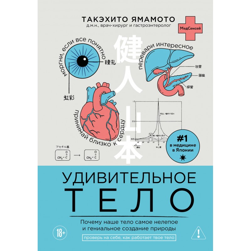 Даже с закрытыми глазами мы понимаем, где находится наш нос, и можем схватить себя за него благодаря чувству проприоцепции, а вот с другим человеком такой «мозговой» фокус не пройдет. Управлять сердцебиением при помощи силы воли у нас не получится, хотя контролировать дыхание — вполне. Наше тело очень тяжелое — одна нога может весить больше 10 килограмм, но уши помогают ему сохранять равновесие. Крошечный отросток под названием «аппендикс» у всех выглядит и расположен по-разному, МРТ не всегда «лучше» КТ, а вот наша кровь красная, потому что… Почему? Доктор медицины и хирург Такэхито Ямамото собрал удивительные научные факты о том, как устроено человеческое тело, что оно умеет и почему болеет, а также рассказал о значимых событиях в истории медицины: от изобретения микроскопа и теории миазмов до открытия инсулина и роботов, делающих операции.