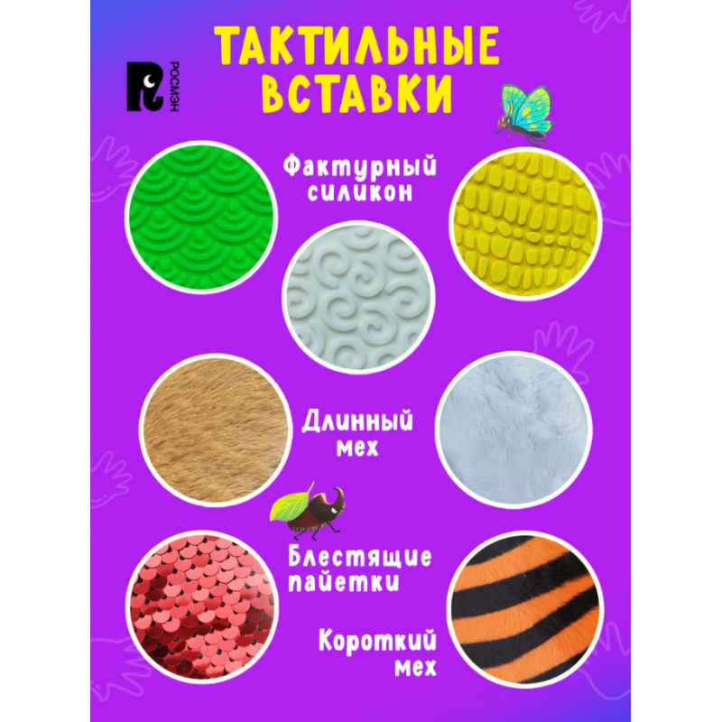 В книге «В зоопарке» представлены крупные тактильные вставки с разными видами текстур: