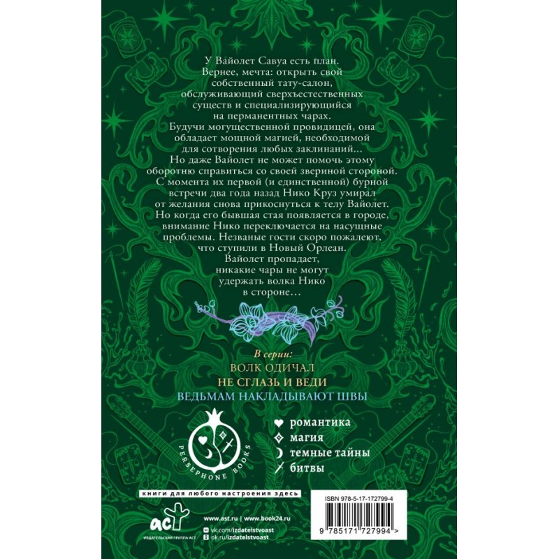 У Вайолет Савуа есть план. Вернее, мечта: открыть свой собственный тату-салон, обслуживающий сверхъестественных существ и специализирующийся на перманентных чарах. Будучи могущественной провидицей, она обладает мощной магией, необходимой для сотворения любых заклинаний... Но даже Вайолет не может помочь этому оборотню справиться со своей звериной стороной. С момента их первой (и единственной) бурной встречи два года назад Нико Круз умирал от желания снова прикоснуться к телу Вайолет. Но когда его бывшая стая появляется в городе, внимание Нико переключается на насущные проблемы. Незваные гости скоро пожалеют, что ступили в Новый Орлеан. Вайолет пропадает, никакие чары не могут удержать волка Нико в стороне…