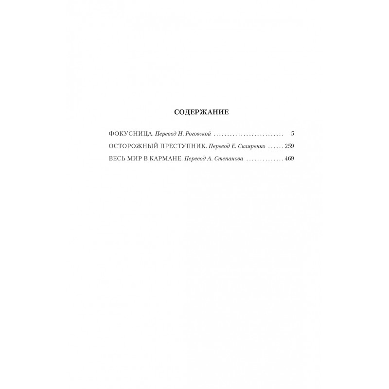 В сборник вошли произведения Дж. Х. Чейза, написанные в 1940–1950 гг.: «Фокусница», полная приключений и искрометного юмора, чего никак не ждешь от классика «крутого детектива»; «Осторожный преступник», в котором Чейз с блеском выступил в роли, можно сказать, Бальзака детективного жанра – исследователя человеческой природы; и «Весь мир в кармане», одно из самых известных произведений писателя, положенное в основу фильма «Мираж», снятого в 1983 г. на Рижской киностудии.